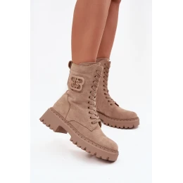 Dámské workery boty s ozdobným zateplené béžové model 21715364 - Boto