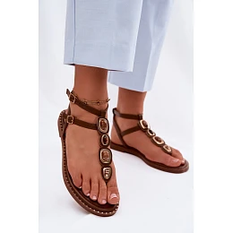 Dámské sandály typu žabky vyrobené z eko kůže jsou stylovou a pohodlnou volbou na teplé dny. Plochý tvar zajišťuje komfort nošení a dvojité zapínání na sponu umožňuje ideálně přizpůsobit botu noze. Přední část zdobí výrazné bižuterní ozdoby, které dodávají celku eleganci a přitahují pozornost. Ideální pro letní stylizace – jak na každý den, tak na výjimečné příležitosti. Při výběru velikosti se řiďte tabulkou velikostí.