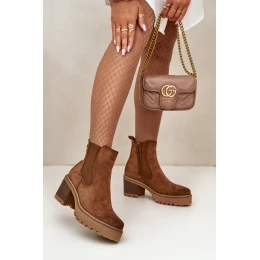 Dámské Zateplené Botky Na Podpatku Eko Semišové Hnědé model 21669073 - Boto
