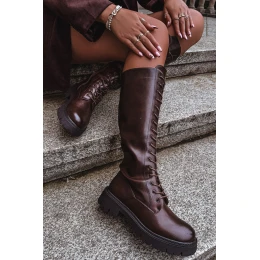 Dámske zateplené šnurovacie čižmy Meliora - čokoláda, eko semiš