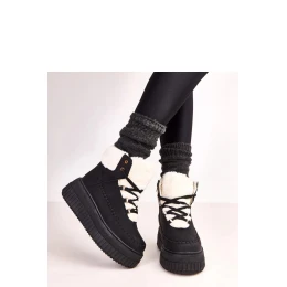 Dámske zimné topánky s kožúškom ZH15 Black with white - Next Step