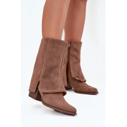 Dámské zimní kozačky s lemem Béžové model 21708519 - VINCEZA
