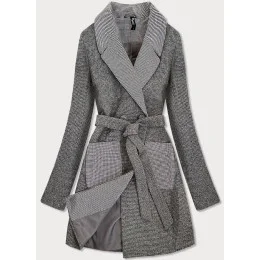 Šedý dámsky károvaný dvojradový kabát (2705)