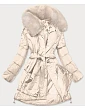 Dámsky zimný kabát s kožušinou béžovej farby (008)