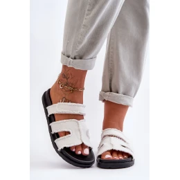 Damskie Klapki Materiałowe Na Rzep Białe Lamirose