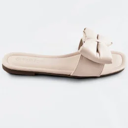 Béžové dámske šľapky s mašľou (H47)