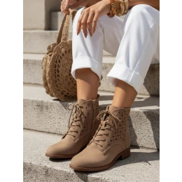 Botki damskie ażurowe ZY1348 kamelowe