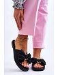 Damskie klapki o klasycznym fasonie. Wykonane z eko skóry. Modna kokarda z ozdobą na przodzie sprawia, że klapki wyglądają niesamowicie! Miękka wkładka jest wygodna w użytkowaniu i została także wykonana z eko skóry. Nosek odkryty, kwadratowy. Klapki zostały osadzone na płaskim obcasie. Modne i komfortowe w użytkowaniu — po prostu musisz je mieć. Przy wyborze rozmiaru prosimy sugerować się tabelą rozmiarów.