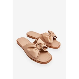 Damskie Skórzane Klapki Z Kokardą Beżowe Becky
