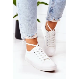 Damskie trampki wykonane ze skóry ekologicznej. Klasyczna forma pasuje do wielu stylizacji. Buty dobrze dopasowują się do kształtu stopy, posiadają miękką, materiałową wkładkę oraz antypoślizgową podeszwę. Przy wyborze rozmiaru prosimy sugerować się tabelą rozmiarów.