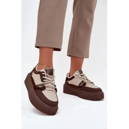 Damskie Sneakersy Na Platformie Big Star SS274356 Panterka Brązowo-Beżowe
