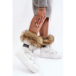 Damskie Śniegowce Sznurowane Białe Santero