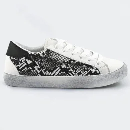 Bielo-čierne dámske trampky so zvieracím motívom - had (6343)