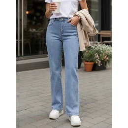 Jeansy damskie o dopracowanym kroju z wysokim stanem i długą nogawką. Denimat z dodatkiem elastanu dobrze układa się na sylwetce i wspiera swobodę ruchu w ciągu dnia. Klasyczne wykończenie z kieszeniami ułatwia dopasowanie do codziennych stylizacji.