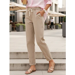 Joggery damskie z wysokim stanem UY2964 beżowe
