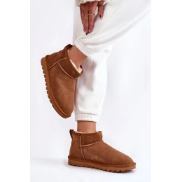 Damskie Zamszowe Niskie Śniegowce Camel Shelie