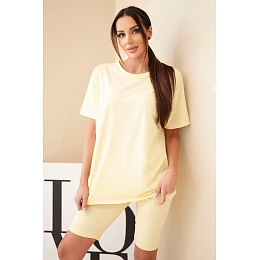Dámský bavlněný komplet s krátkým rukávem a šortkami žlutý