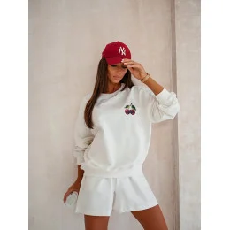 Dámska bavlnená súprava v ecru farbe - mikina a šortky (VE101)