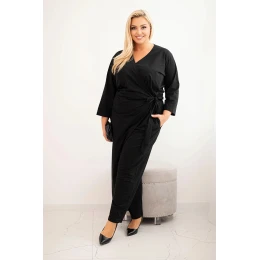 Dámský bavlněný overal Plus Size s vázáním v pase a 3/4 rukávem černý