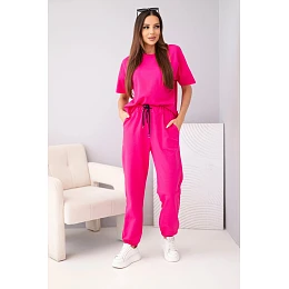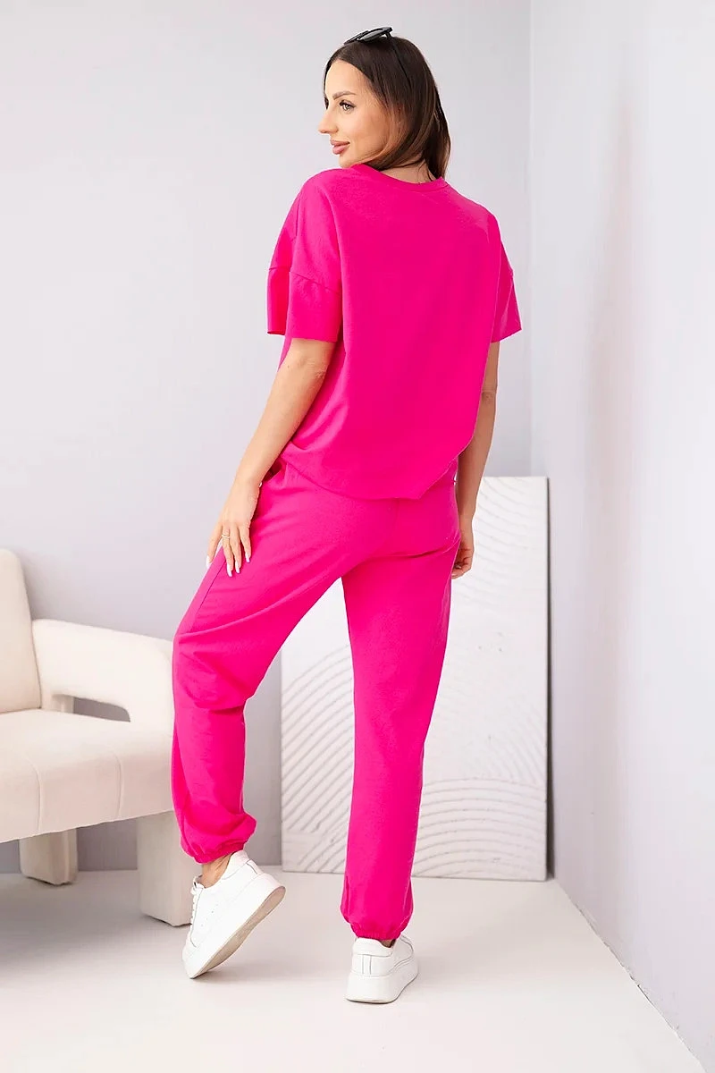 Dámsky bavlnený set: blúzka s krátkym rukávom a tepláky fuchsiová