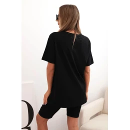 Dámsky bavlnený set s krátkym rukávom a šortkami čierny
