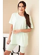 Táto pohodlná a štýlová dámska súprava je ideálnou voľbou pre ženy, ktoré si cenia pohodlie a módny vzhľad na každodenné nosenie. Súprava sa skladá z klasického trička s krátkym rukávom a priliehavých šortiek, ktoré spolu tvoria ucelený a praktický outfit. Vďaka minimalistickému strihu je súprava veľmi univerzálna a ľahko kombinovateľná - dokonale poslúži doma, na prechádzke aj počas letnej dovolenky.