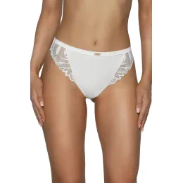Dámske brazilky 2104/b Yasemin cream AVA - krémová farba - vyrobené z hladkého mikrovlákna - zdobené čipkou a jemnou sieťovinou