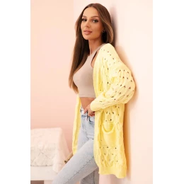 Dámský cardigan s kapsami a síťovinou žlutý