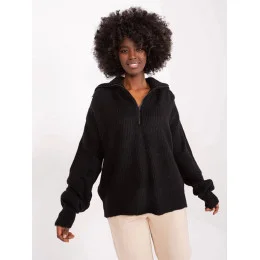 Dámsky voľný sveter s rolákom čierny (0374)
