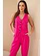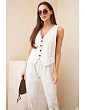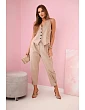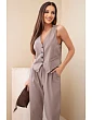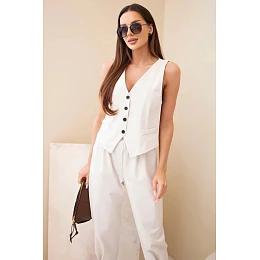 Dámsky elegantný set s vestou na gombíky a nohavicami béžovej farby