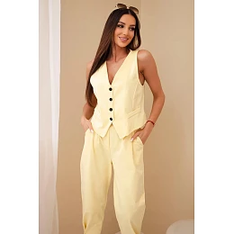 Dámsky elegantný set s vestou a nohavicami na gombíky žltej farby