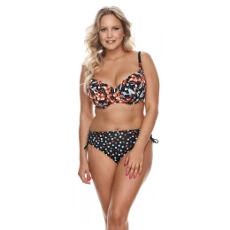 Podprsenka v bikinách určená pre ženy, ktoré sú od prírody veľkorysejšie. Podprsenka je vyrobená z kvetinového úpletu, má mäkké košíčky s tvarovacími výrezmi a je vystužená kosticami pre vynikajúcu podporu poprsia. Popruhy sú nastaviteľné a neodnímateľné. Šírka ramienok a typ zapínania sú prispôsobené veľkosti plaviek. Jemné zdobenie medzi šálkami dodáva celku šarm. Ideálne pre ženy s plnšími tvarmi.