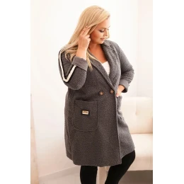 Dámsky kabát z umelej jahňacej kože v nadmernej veľkosti s vreckami Graphite