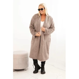 Dámský kabát Plus Size z viskózy bez zapínání s kapsami fango