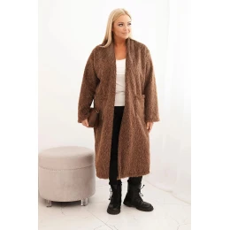 Dámský kabát Plus Size z viskózy bez zapínání s kapsami hnědý
