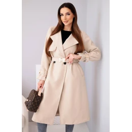 Dámský kabát s páskem a zlatými přezkami béžový