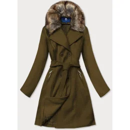 Dámsky khaki kabát s kožušinou (JC241)