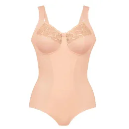 Elegantní zeštíhlující body Anita. Košíčky bez podšívky, vyrobené z "prodyšného", pro tělo příjemného mikrovlákna, zdobené květinovou výšivkou na tylu. Tkaniny nejvyšší kvality zajišťují vysoký komfort nošení. Dokonale přilne k tělu a zároveň poskytuje volnost pohybu. Třídílný košíček s bočními lištami poskytuje stabilní oporu poprsí. Doporučujeme dámám, které ocení pohodlí v kombinaci s tvarováním postavy.