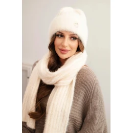 Dámský komplet čepice a z měkké příze ecru model 21800779 - K-Fashion