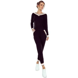Dámska súprava Fanny black ELDAR - čierna - vyrobená z kvalitnej viskózy - dlhé rukávy - dlhé nohavice s vreckami - výstrih, manžety, vrecká a nohavice zakončené farebnou šnúrkou na stiahnutie Zloženie materiálu: 90% viskóza + 5% polyester + 5% elastan