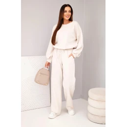 Dámský komplet máslová mikina s broží a kalhoty s model 21921262 nohavicí béžový - K-Fashion