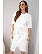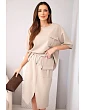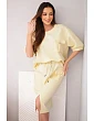 Táto štýlová dámska maslová súprava je ideálnou voľbou pre ženy, ktoré ocenia pohodlie a módny vzhľad v jednom. Súprava sa skladá z voľného topu s krátkymi rukávmi a priliehavej midi sukne s elastickým pásom. Hladký materiál s príjemnou, mäkkou štruktúrou sa krásne prispôsobí postave a zaručuje pohodlie počas celého dňa. Ozdobné cargo vrecko na topu a sukni dodáva súprave moderný nádych a zaväzovanie v páse zvýrazňuje ženskú siluetu.