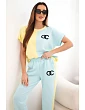 Dámsky maslový set s oversize mikinou a širokými nohavicami žltá + mentolová