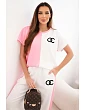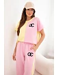 Dámsky set masełkowy je štýlovou a pohodlnou ponukou pre ženy, ktoré oceňujú moderný dizajn a komfort pri nosení. Set pozostáva z voľnej mikiny oversize s krátkymi rukávmi a širokých nohavíc s elastickým pásom. Kontrastná farebná kombinácia a módne nášivky na prednej strane dodávajú setu výrazný športovo-voľnočasový charakter.