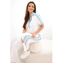 Dámska súprava s polokošeľou a širokými nohavicami tmavá mentolová