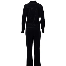Dámský komplet 3223611 - Féraud, elegantní dámský komplet, vrchní díl z hladkého decentně lesklého materiálu, uprostřed efektně zdobený sklady, zapínání na zip. Zadní část velmi efektně ozdobena swarovskými kamínky. Kalhoty jsou z hladkého materiálu, v pase na gumu. Barva černá, materiál 55% bavlna, 20% polyester, 25% viskóza.