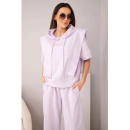 Dámský komplet model 22022727 mikina s kapucí a volné kalhoty se zavazováním světle fialová - K-Fashion