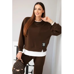 Dámska súprava s maslovou mikinou a voľnými teplákmi hnedej farby