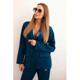 Tento elegantný dámsky viskózový komplet je ideálnou kombináciou klasiky a moderny. Sako s jednoduchým strihom a ozdobným motívom kamienkov na hrudi dodáva stylingu jedinečný charakter a pohodlné nohavice s elastickým pásom a jemným zdobením tvoria ucelený a štýlový komplet. Je to vynikajúci komplet na mnohé príležitosti - do práce, na stretnutia alebo každodenné vychádzky.