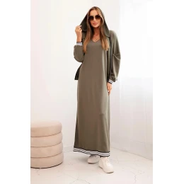 Dámska súprava z viskózy s otvorenou mikinou a dlhou sukňou khaki